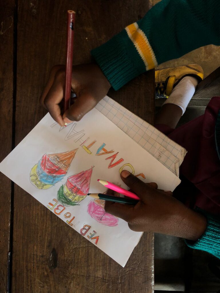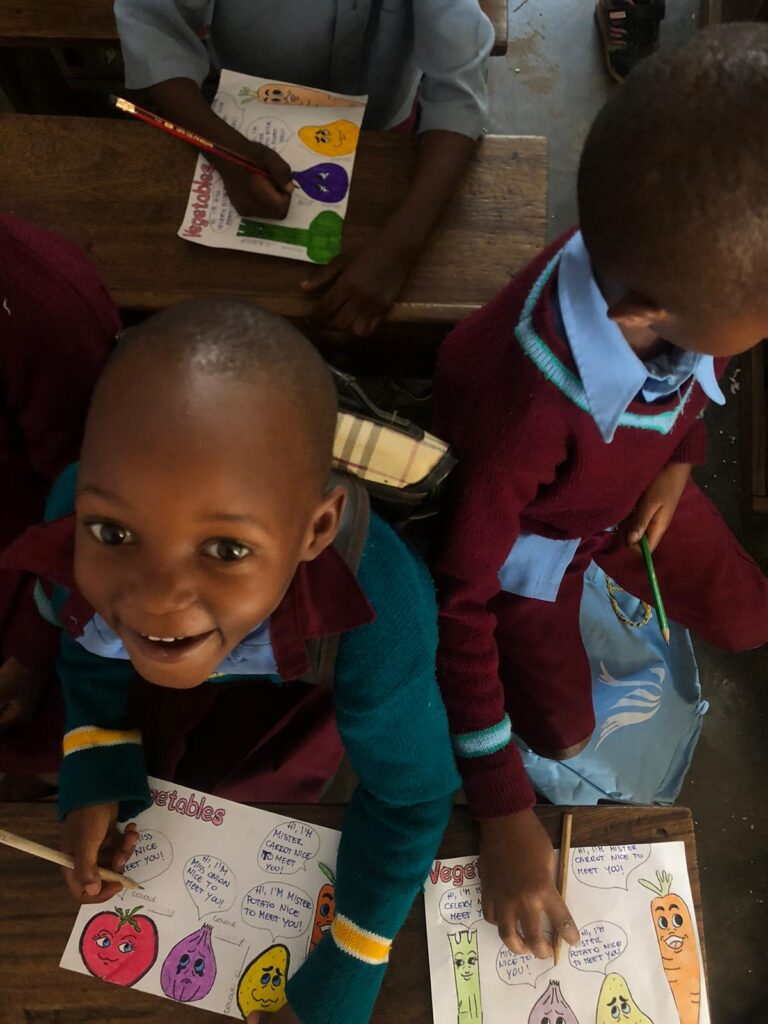 In queste tre ore insegnamo inglese attraverso attività di gruppo, conversazioni con temi diversi scelti dagli studenti, film, podcast e lezioni classiche di grammatica di base. Grosso del lavoro, per la scuola, lo svolgiamo una volta tornate a casa con i nostri computer e il tablet. A scuola disponiamo di una piccola biblioteca da dove prendiamo la maggior parte del materiale scolastico e libri per imparare lo swahili. Una volta alla settimana, i ragazzi della secondaria, dedicano il pomeriggio allo svolgimento di club che, di volta in volta, cambiano in base alla materia che viene scelta. Giulia, la terza settimana, ha preparato una lezione interattiva sulla geografia della Tanzania.